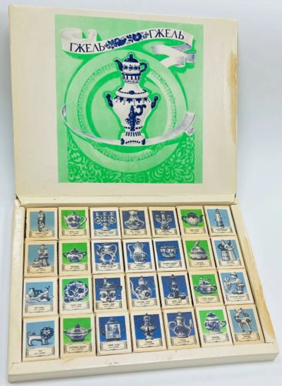 коллекционный набор спичечных коробков. *Советский фарфор. Гжель.* 1978 год. * 28 коробков в подарочной коробке.*коробки полные , нечирканные.*