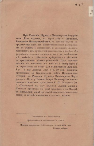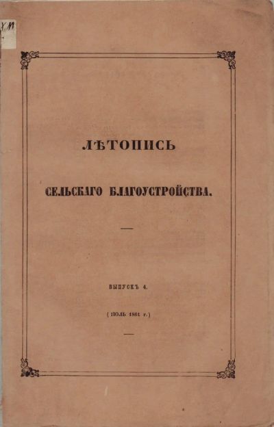 Летопись сельского благоустройства. Выпуск 4 .* Июль 1861 год.*