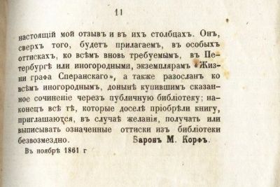 В Редакцию Северной Пчелы. (Сообщение барона Корфа по поводу изданной им книги "Жизнь графа Сперанского"). * 1861 год издания. * Сперанский — генерал-губернатором Сибири.*