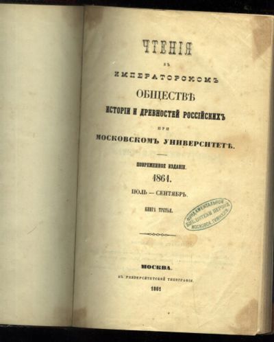 Чтения в Императорском Обществе Истории и Древностей Российских при Московском Университете.* 1861 год издания. *Путешествия Венецианца Марко Поло, Заметки о Сибири и другие интересные статьи.*