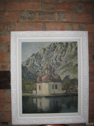 Церковь на озере Ainsr масло картон 1958 г Германия
