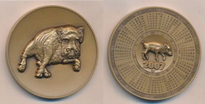 Россия Медаль 2007 Год Кабана Свиньи D-60 mm футлял СПМД Томпак