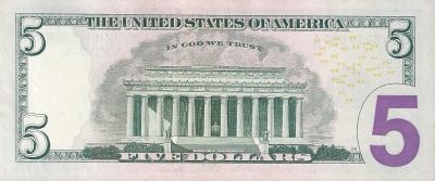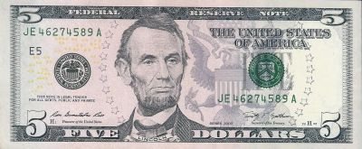 5 долларов 2009 год. Авраама Линкольн. литера J.