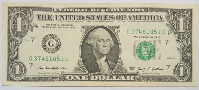 США 1 доллар Series 2009, G 37461051 D, 7 G-Чикаго, Федеральные резервы Иллинойс