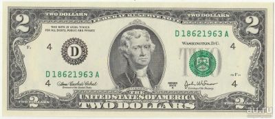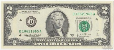 2$ доллара 2003 г. UNC Номер - Год рождения 1998г.