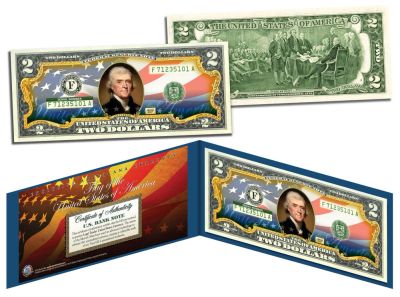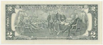 Банкнота 2 доллара США Декларация Независимости,цветная с 2-х сторон