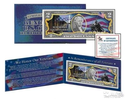 Банкнота 2 доллара США Памяти ветеранам,редкая