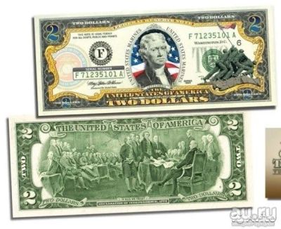 Банкнота 2 доллара США Флаг " Старый дизайн"