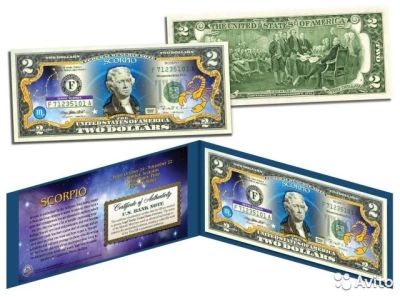 Банкнота 2 доллара США Знаки зодиака Скорпион