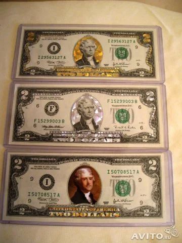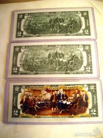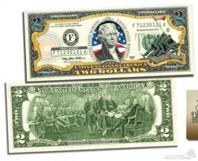 Банкнота 2 доллара США Вторая Мировая Сталин,Черчилль,Рузвельт