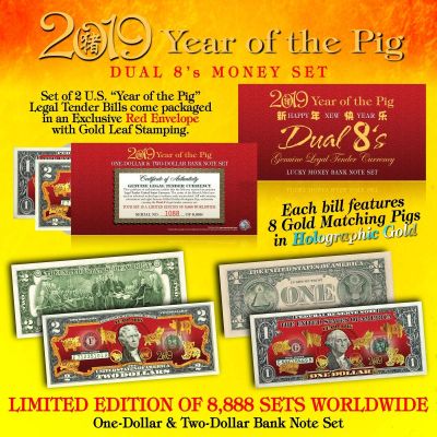 2 доллара США + 1 $ набор Год Свиньи,На удачу!