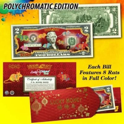2 доллара США Год Крысы,полихром,цветная На удачу!