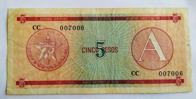 Куба 5 песо 1985 валютное свидетельство 1-й выпуск низкий номер