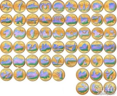 Набор квотеров США 56шт,цветные.1999-2009гг