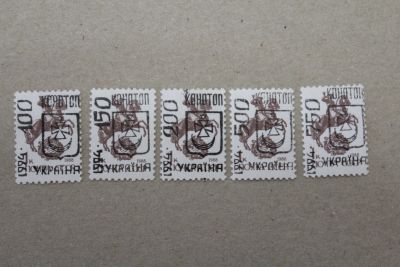 Марки Украина 1994 года. Надпечатка на стандартах СССР Миргород. Гербы.