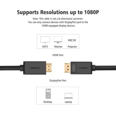 Кабель UGREEN Display Port to HDMI Cable, 2м, черный DP101