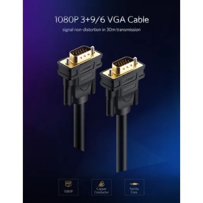 Кабель UGREEN VGA Male Cable, 1,5м, черный VG101