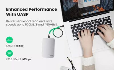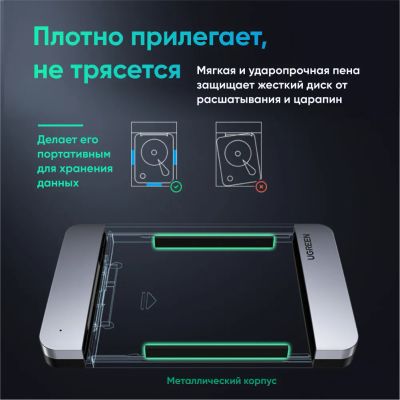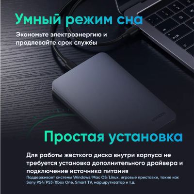 Корпус для диска UGREEN CM471 (30719) 2.5 Inch Hard Drive Enclosure with Cable 5G, черный
