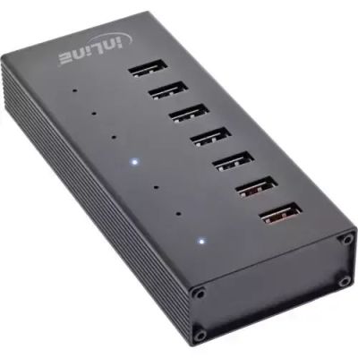 USB-хаб InLine 7-Port USB 3.2 Gen 1 с блоком питанием алюминий USB-C / USB-A