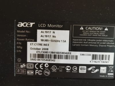 Монитор 19" acer AL1917, VGA, Audio вход, встроенные динамики, удобный вариант создать телевизор в связке с тв приставкой