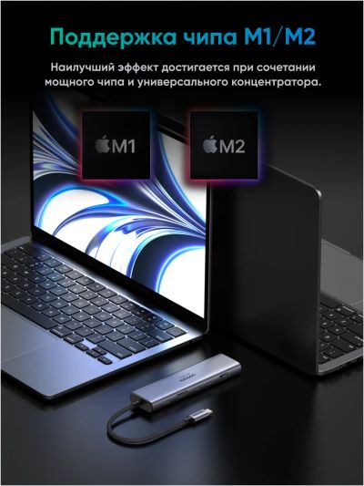 USB-хаб Satechi 7-в-1 USB-C Slim Multiport Adapter 4K Ethernet, серый космос