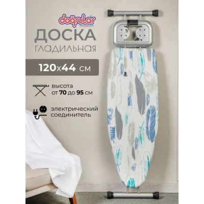 Доска гладильная 120х38 см, Глория, подставка для утюга, встроенная розетка, удлинитель 2 м, Dogrular, 224703