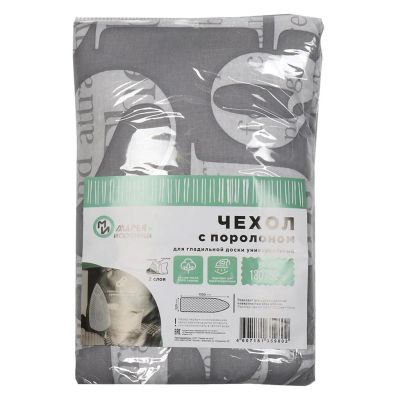 Чехол для гладильной доски/ парогенератора с поролоном, 130х52 см, серый, широкий, Марья Искусница, ЧП2