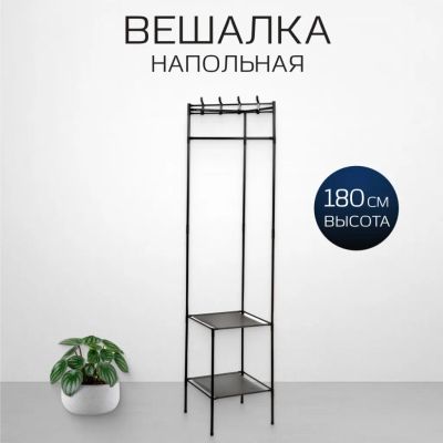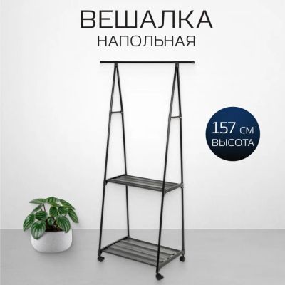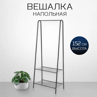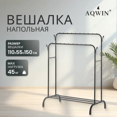Вешалка напольная 110х55х150 см, Aqwin, металл, полка для обуви, 45 кг, Элит, VPF66, черная, двойная, с вешалками