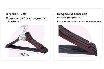 Набор вешалок для одежды BERKRAFT Nature, светлое дерево, светло-серый