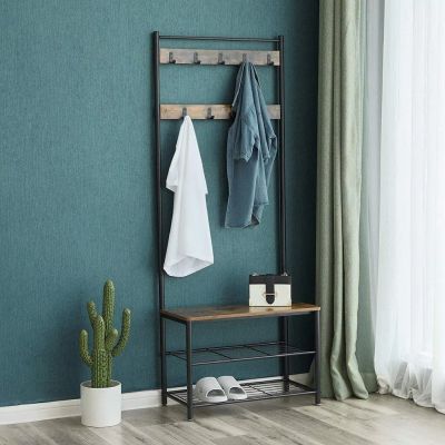 Вешалка в прихожую 70х32х175 см, металл, полка для обуви, 80 кг, Лофт, HSR41BX, коричнево-черная