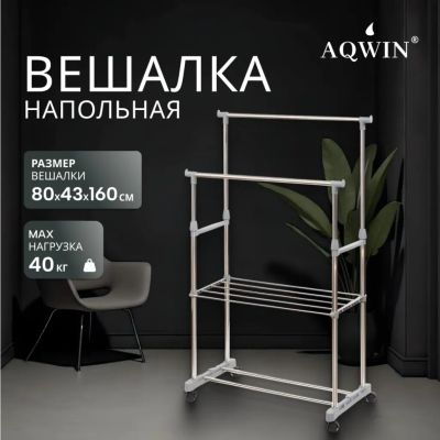Вешалка напольная 80х43х160 см, Aqwin, металл, с колесами, телескопическая, 40 кг, VSY20, серая