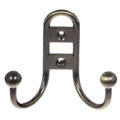 Крючок-вешалка 2-рожковый, Стандарт, 208 B AB, 10 209, старая бронза
