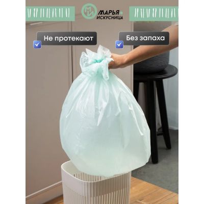 Пакеты для мусора 35 л, 15 шт, 18 мкм, особопрочные, с завязками, Марья Искусница