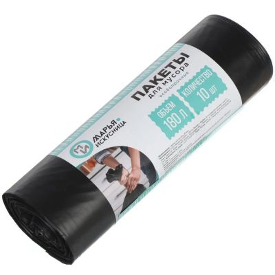 Пакеты для мусора 180 л, 10 шт, особопрочные, Марья Искусница, 9831, черные