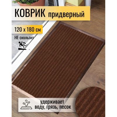Коврик грязезащитный влаговпитывающий, 80х120 см, прямоугольный, полиэстер, коричневый