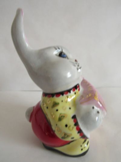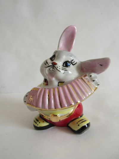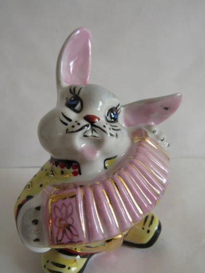 Заяц с гармошкой фарфор Вербилки новый ,роспись