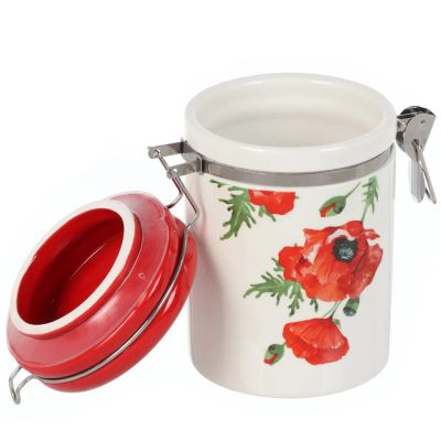 Банка для сыпучих продуктов, доломит, 0.55 л, 9.5х9.5х15.3 см, с крышкой, Daniks, Алый мак