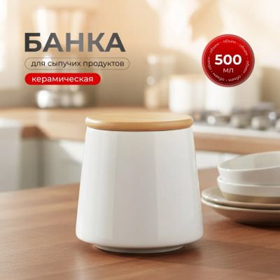 Банка для сыпучих продуктов, керамика, 0.5 л, 8.7х10.2х10.5 см, с крышкой, Белая, Y4-5029