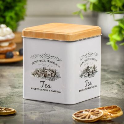 Банка для сыпучих продуктов, металл, 1.2 л, 10х10х12 см, с крышкой, Чай, Y3-1189-1