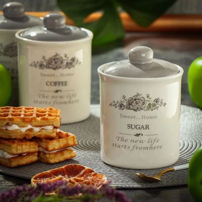 Банка для сыпучих продуктов, керамика, 0.7 л, 3 шт, с крышкой, Y156