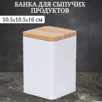 Банка для сыпучих продуктов, жесть, 1.4 л, 10.5х10.5х16 см, с крышкой, Y4-6418, белая