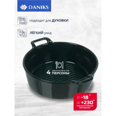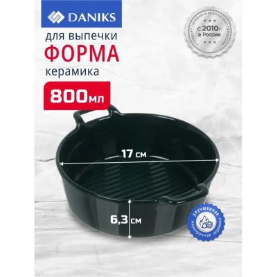 Форма для выпечки керамика, 20.5х17х6.3 см, 0.8 л, круглая, Daniks, Эмеральд, Y4-8741