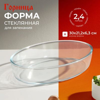 Форма для запекания стекло, 21.2х30х6.3 см, 2.4 л, овальная, без ручек, Горница, Ф0240