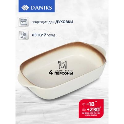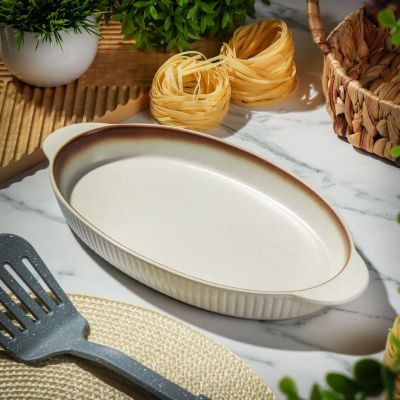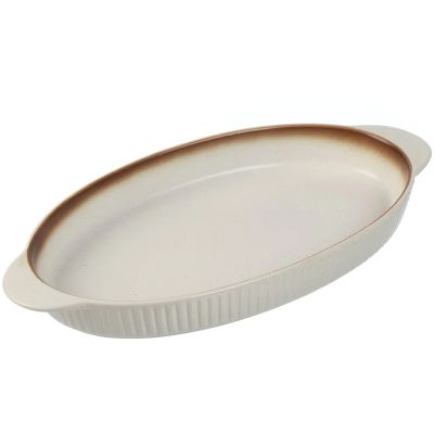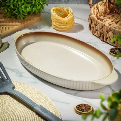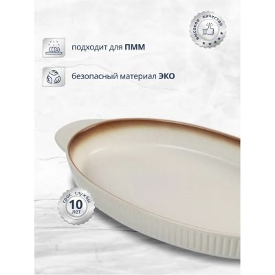 Форма для выпечки керамика, 36х18.5х3.5 см, 1 л, овальная, бежевая, Daniks, Полдень, Y4-8729
