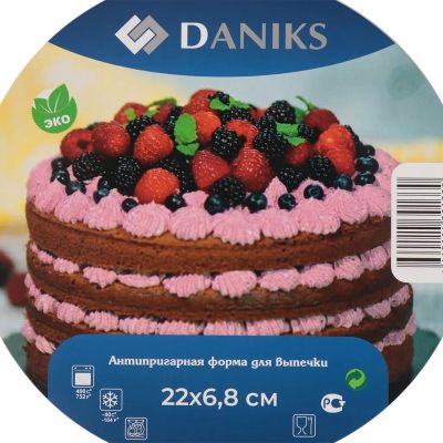 Форма для запекания сталь, 22х22х6.8 см, антипригарное покрытие, круглая, разъемная, Daniks, K-8020.4
