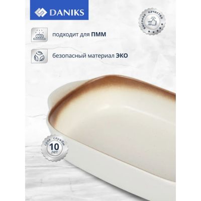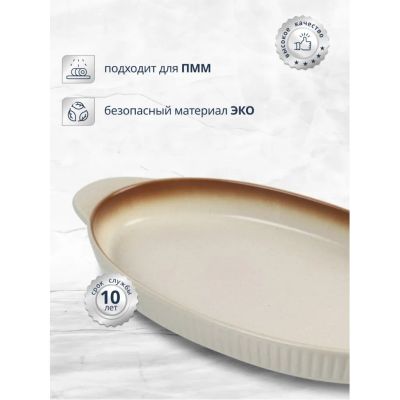 Форма для выпечки керамика, 31.5х16.5х2.5 см, 0.7 л, овальная, бежевая, Daniks, Полдень, Y4-8728
