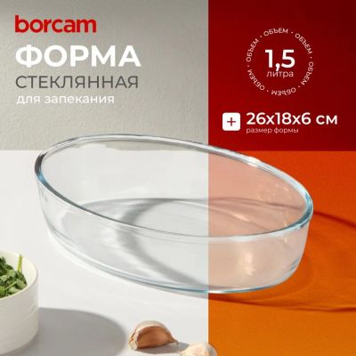 Форма для запекания стекло, 1.5 л, овальная, Borcam, 59084