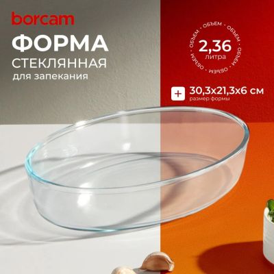 Форма для запекания стекло, 21.3х30.3х6 см, 2.36 л, овальная, Borcam, 59064