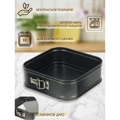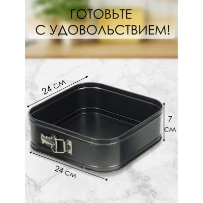 Форма для запекания сталь, 24х24х7 см, антипригарное покрытие, квадратная, разъемная, черная, Daniks, KB18010-24