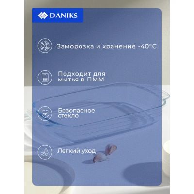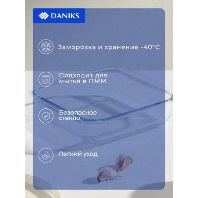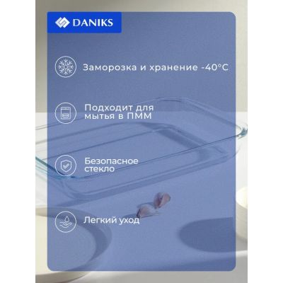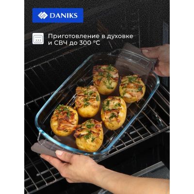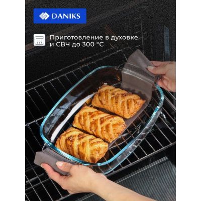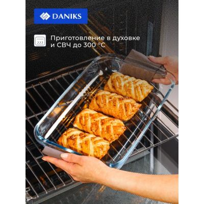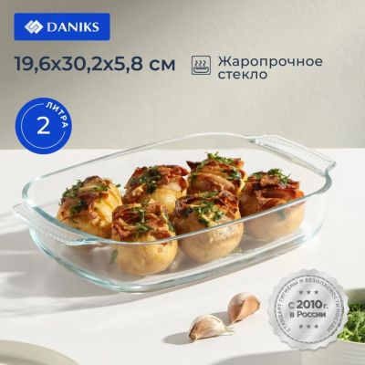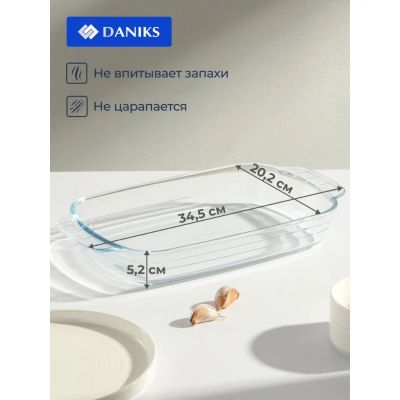Форма для запекания стекло, 20.2х34.5х5.2 см, 2 л, прямоугольная, Daniks